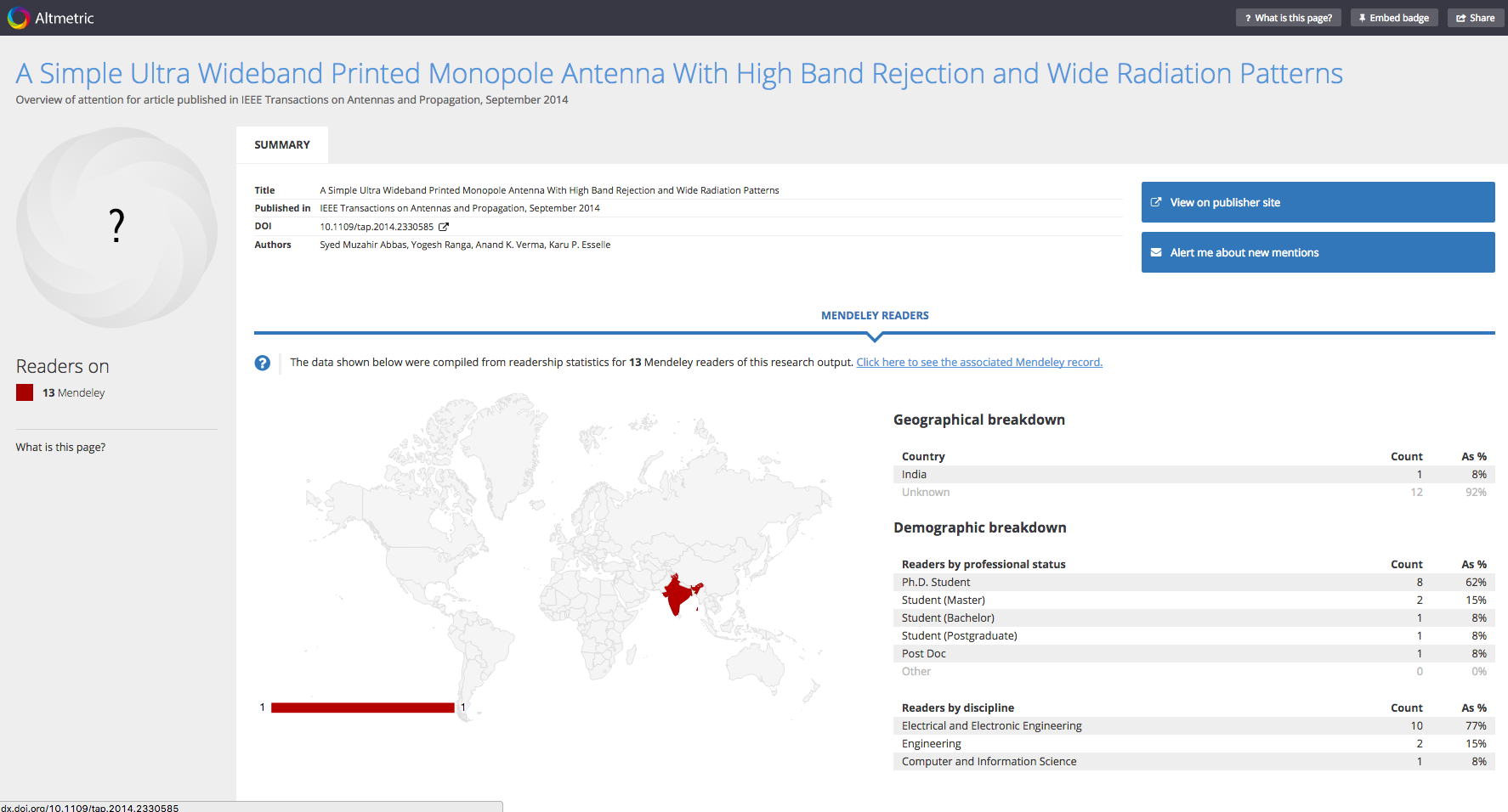 If an article hasn't been mentioned, it will still have a details page if it has mentions, such as Mendeley readers, that don't count towards the overall attention score a details page without additional tabs will be created.
